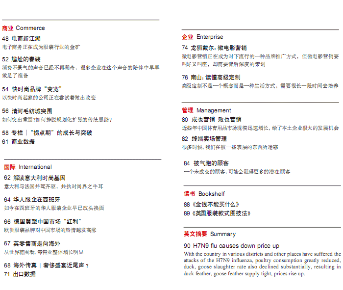 中國(guó)雜志網(wǎng) >> 《服裝界》 雜志 >> 2013年5期雜志目錄